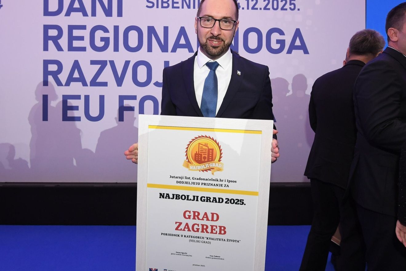 Nagrada ‘Najbolji grad’ – pobjednik kategorije Nagrada za kvalitetu života- veliki grad, Grad Zagreb, Tomislav Tomašević (Foto: Niksa Stipanicev / CROPIX)